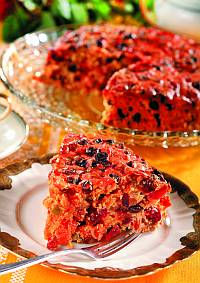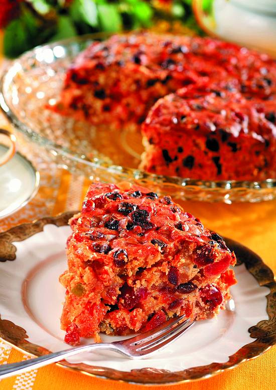 Przełożyć ciasto do tortownicy i piec ok. 2,5 godz. w piekarniku nagrzanym do 150°C. Po 2 godzinach sprawdzić patyczkiem, czy jest upieczone. Gdyby za szybko się rumieniło, przykryć folią aluminiową. Wystudzić, nakłuć wykałaczką i nasączyć pozostałą brandy. Szczelnie zawinąć w pergamin i w folię. Przechowywać do świąt, co tydzień nasączając 2 łyżkami brandy. Upiec 2 tygodnie do 3 miesięcy przed świętami.