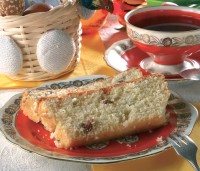 Masło lub margarynę stopić, wlać letnie mleko, wsypać cukier. zamieszać , wbić jaja, dodać pokruszone drożdże i jeszcze raz wymieszać. Zostawić w garnku na 7–10 godz. Potem dodać mąkę, sól, olej i bakalie (rodzynki wcześniej sparzyć i osuszyć). Wymieszać mikserem ok. 5 min. Wyłożyć do prostokątnej blaszki o wymiarach 15 x 40 cm wysmarowanej tłuszczem i obsypanej mąką. Niewyrośnięte ciasto wstawić do zimnego piecyka, ustawić minimalny płomień (w piekarniku elektrycznym temperaturę 100°C) i zostawić uchylone drzwiczki (w szparę włożyć trzonek drewnianej łyżki, żeby się nie zamknęły). Gdy ciasto wyrośnie, zwiększyć płomień i zamknąć piecyk. Piec w piekarniku nagrzanym do 180°C na złoty kolor. Sprawdzić, czy patyczek wbity w środek ciasta po wyjęciu jest suchy. Wtedy wyjąć ciasto z pieca.