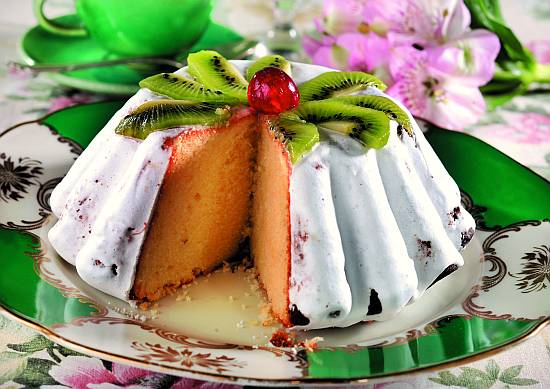 Jaja umyć, oddzielić białka od żółtek. Białka w wysokim naczyniu wstawić do lodówki. Miękkie masło ucierać, dodając po trochę cukru i po jednym żółtku. Dalej ucierając wsypywać porcjami mąkę wymieszaną z proszkiem do pieczenia, sok i skórkę z cytryn, pianę ubitą na sztywno z białek, wymieszać trzepaczką rózgową.