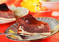 Do przygotowanej formy wlać jasną masę serową. Na środek wyłożyć ciemną masę i delikatnie widelcem przemieszać, ale tak, by masy nie całkiem się połączyły. Piec ok. 40 minut w piekarniku nagrzanym do 180°C z nawiewem (bez nawiewu trochę dłużej).